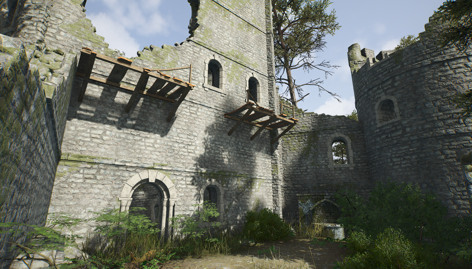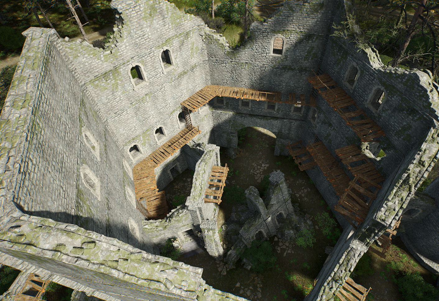 Unsere Leveldesigner sind ebenfalls sehr beschäftigt mit einer Vielzahl von Fehlerbehebungen, aber auch mit der Erstellung von Speicherprofilen und Optimierungen sowie mit einer Reihe von Aufgaben in Bezug auf die Basiselemente, wie z. B. Farbanpassungen und Zerstörungspartikel. Außerdem arbeitet das Team an der Überarbeitung der Burgruinen, der Fabrikschornsteine und des Passagiergebäudes auf dem Flughafen POI. Hier gibt es einen kleinen Einblick in die neue und verbesserte Burg: