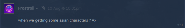- Wenn du deine eigene Spielfigur erstellen willst, kannst du das im Creator tun, bevor du das Spiel startest. Spielt mit den Voreinstellungen herum und ihr werdet auf die asiatischen Charaktere stoßen. Wenn du dich jedoch auf DLC Charaktere beziehst, konzentrieren wir uns derzeit darauf, alle versprochenen Funktionen für die Version 1.0 des Spiels zu liefern, und bis dahin gibt es keine Pläne für neue DLC Charaktere. Wenn es soweit ist, werden wir sehen, was die Zukunft in dieser Hinsicht bringen wird, da wir derzeit nichts Neues in dieser Hinsicht zu berichten haben.