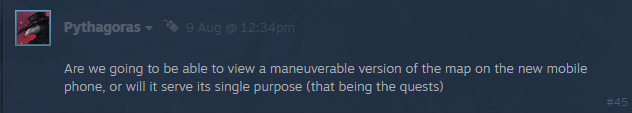 - Vorerst wird nur die Quest Funktionalität auf dem Mobiltelefon verfügbar sein. Deine Idee klingt jedoch wie ein großartiger Vorschlag, weshalb wir dich bitten möchten, sie mit dem Rest der Community im Forum "Vorschläge" auf unserer Steam Seite zu teilen. Unsere Designer durchforsten dieses Forum, und vielleicht stoßen sie ja auf deine Idee