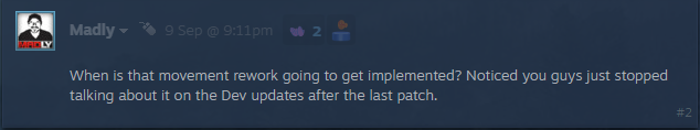 (Wann wird die Überarbeitung der Bewegung umgesetzt? Mir ist aufgefallen, dass ihr nach dem letzten Pash aufgehört habt, in den Entwickler-Updates darüber zu sprechen.)