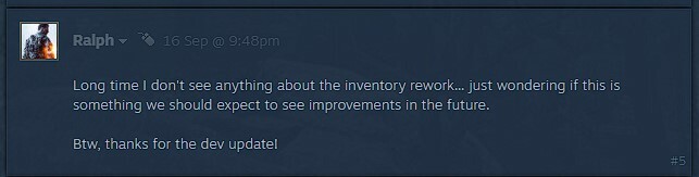 - Lange Zeit habe ich nichts über die Überarbeitung des Inventars gesehen... ich frage mich nur, ob dies etwas ist, das wir in Zukunft erwarten sollten.