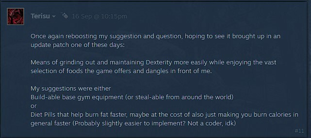 Ein Mittel, um Dexertity(DEX) leichter zu erreichen und zu erhalten, während ich die riesige Auswahl an Lebensmitteln genieße, die das Spiel bietet und vor mir baumelt.