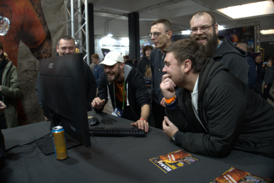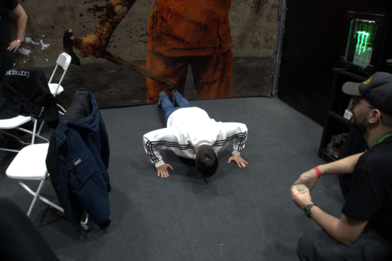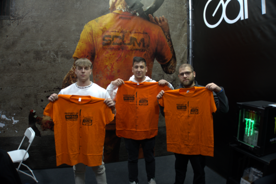 Es ist Tradition, dass die Leute immer auf uns zugehen, um dieses süße SCUM-Merchandise zu bekommen. Und wie es Tradition ist, konnte man sie entweder mit Köpfchen oder mit Muskelkraft gewinnen. Man konnte also Fragen zum Spiel beantworten oder Liegestütze machen. Was denkst du, wie das Verhältnis dieser beiden Möglichkeiten war?