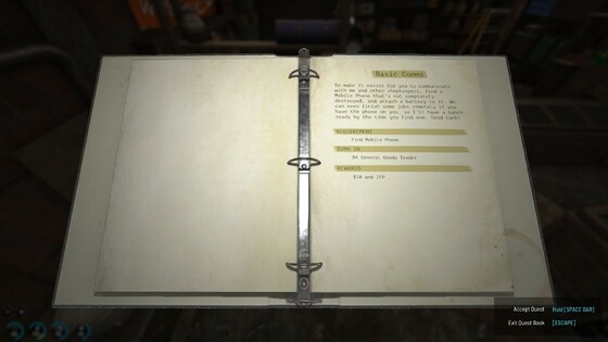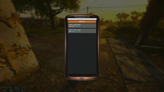 Wenn du ein Telefon und eine dazugehörige Batterie findest, kannst du jederzeit und überall Quests annehmen. Schaltet es einfach ein und schaut es durch!