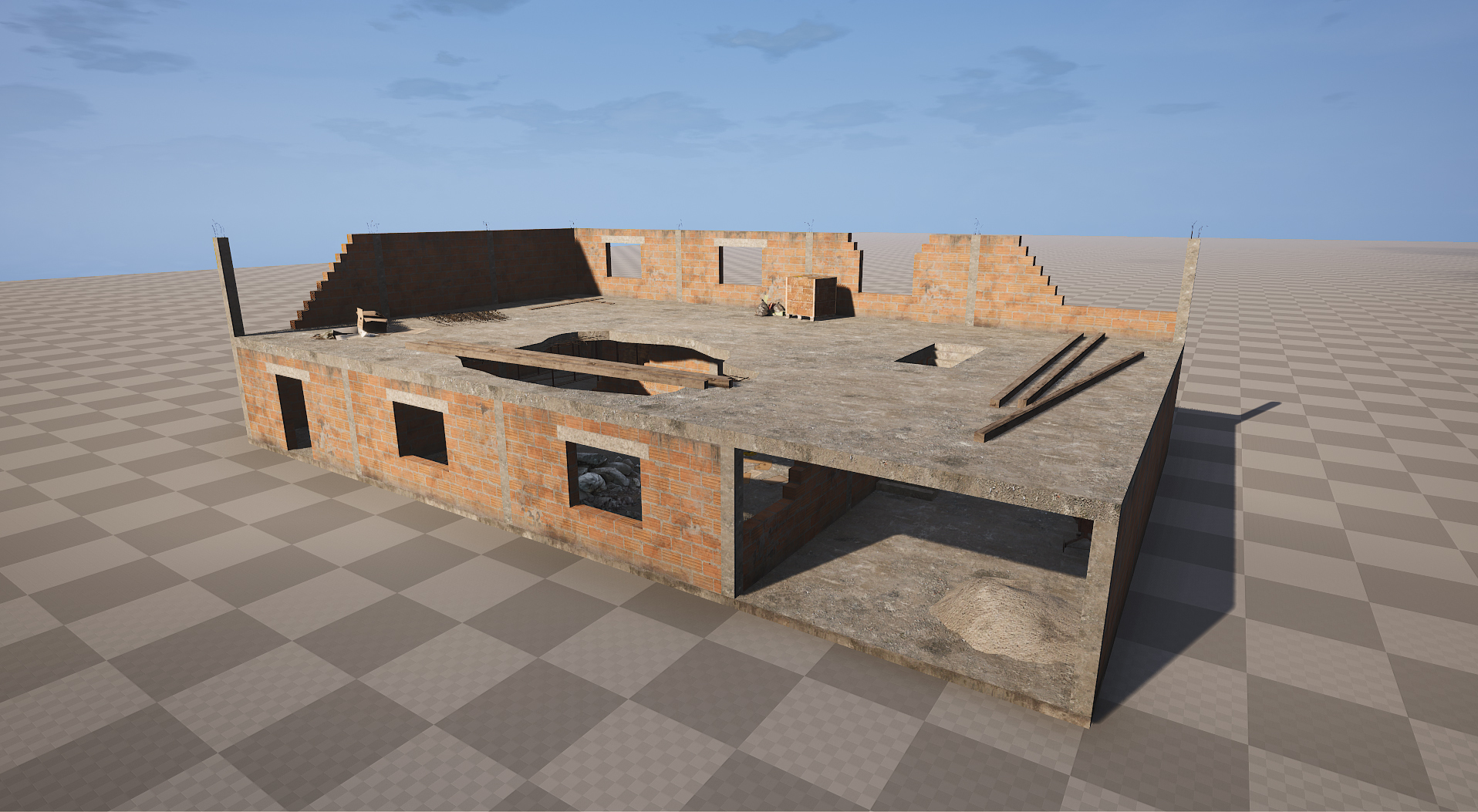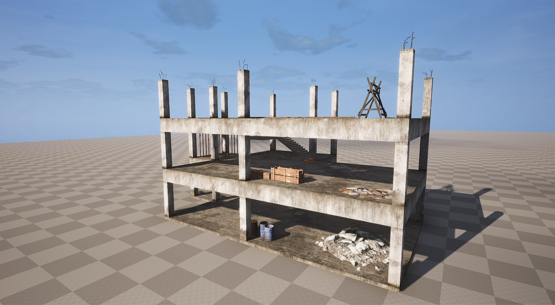 Wir reparieren einige Gebäude, die für immer unvollendet geblieben sind (Sehen Sie den Wortwitz?). Aber es macht Spaß, von ihnen zu schießen.