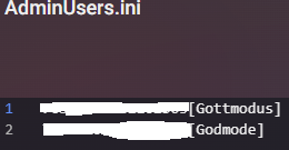 Und unter ServerSettingsAdminUsers.ini nochmal die Steam ID aber ohne Godmodus