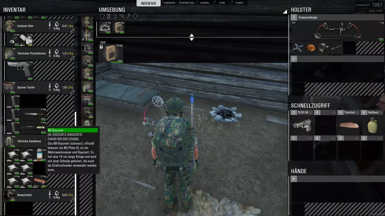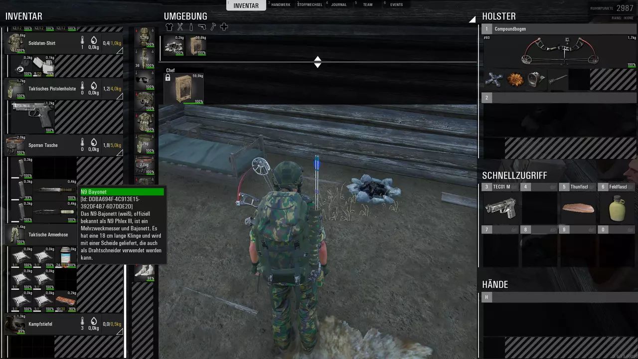 Dann wurde ich neugierig weil ich weiß das es auch eine "Schwarze" Version gibt. Ich habe mir also die Spawncodes angeschaut, der Spawncode #spawnitem 1H_N9_Black spawnt ein Messer mit weissem Griff, der Code #spawnitem 1H_N9_White spawnt ein Messer mit Schwarzem Griff.