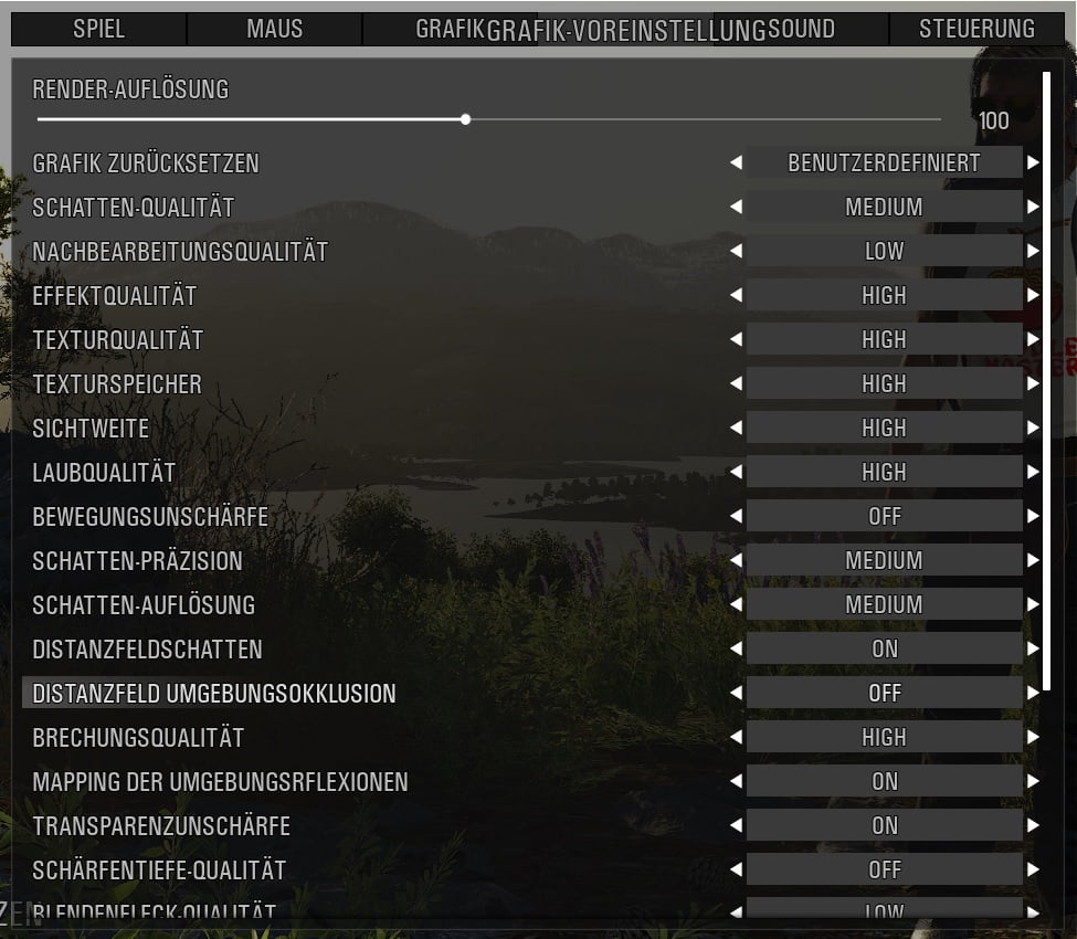 Als ich dann alles auf Hoch gestellt hatte, sah es viel besser aus. Die Grafikfehler waren weg.
