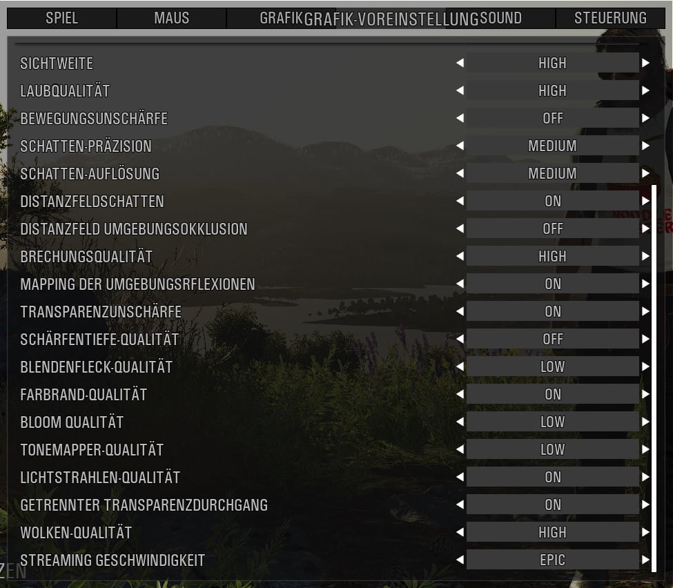 Nach den Grakatausch habe ich erstmal alles auf Episch gestellt und hatte viele unschöne Grafikeffekte.