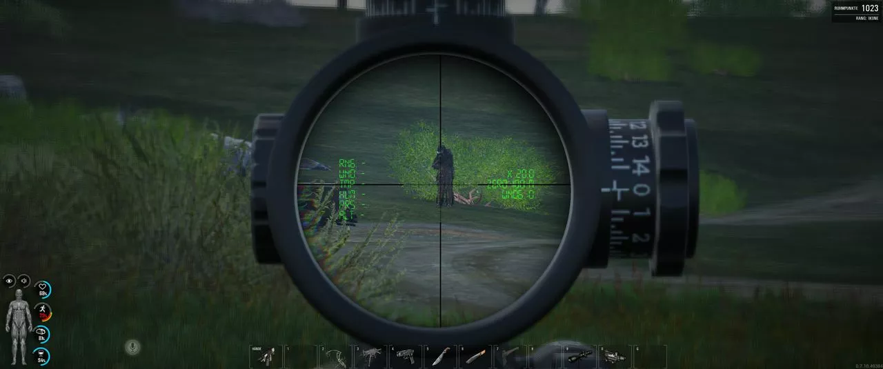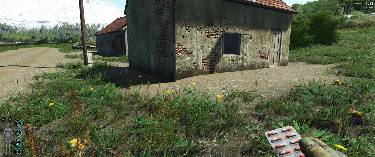 Ich stand hinter den beiden Häusern in Golubovec und der Squadmate hat mich durch Haus und Scheune sowohl mit Gewehr als auch mit Pfeil und Bogen getroffen.