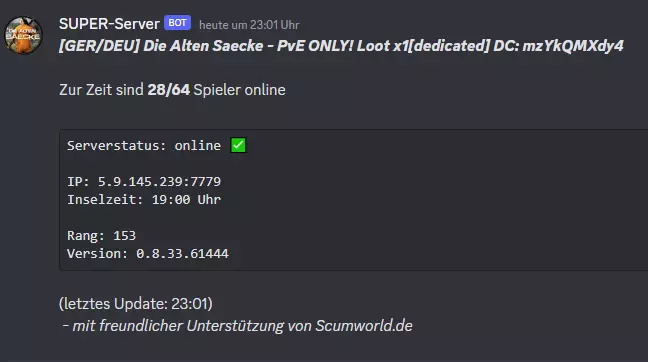 Weitere Infos zu unserem Server findet Ihr in der SCUM Serverliste hier im Forum.