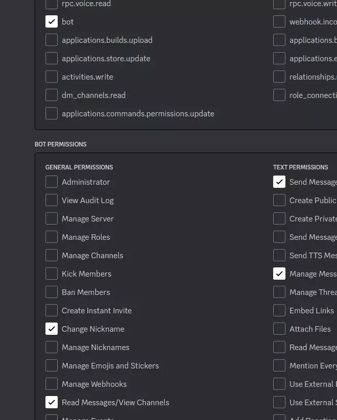 Die benötigten Botrechte