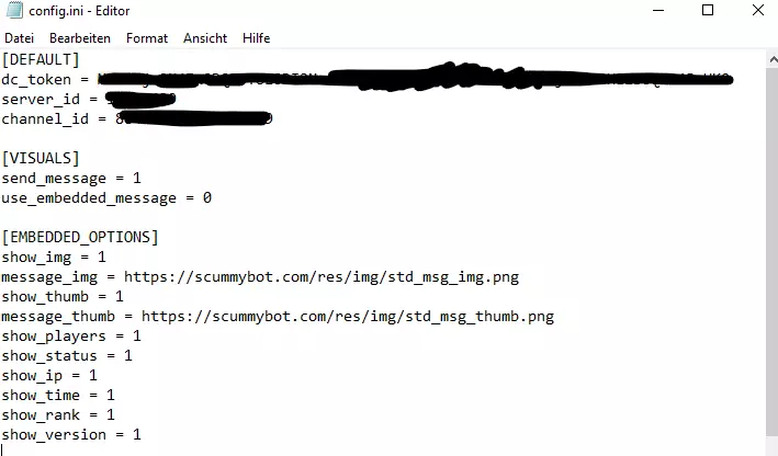 Starte nun den Bot zum ersten Mal. Es wird eine Konfigurationsdatei mit Standardwerten erstellt (config.ini).