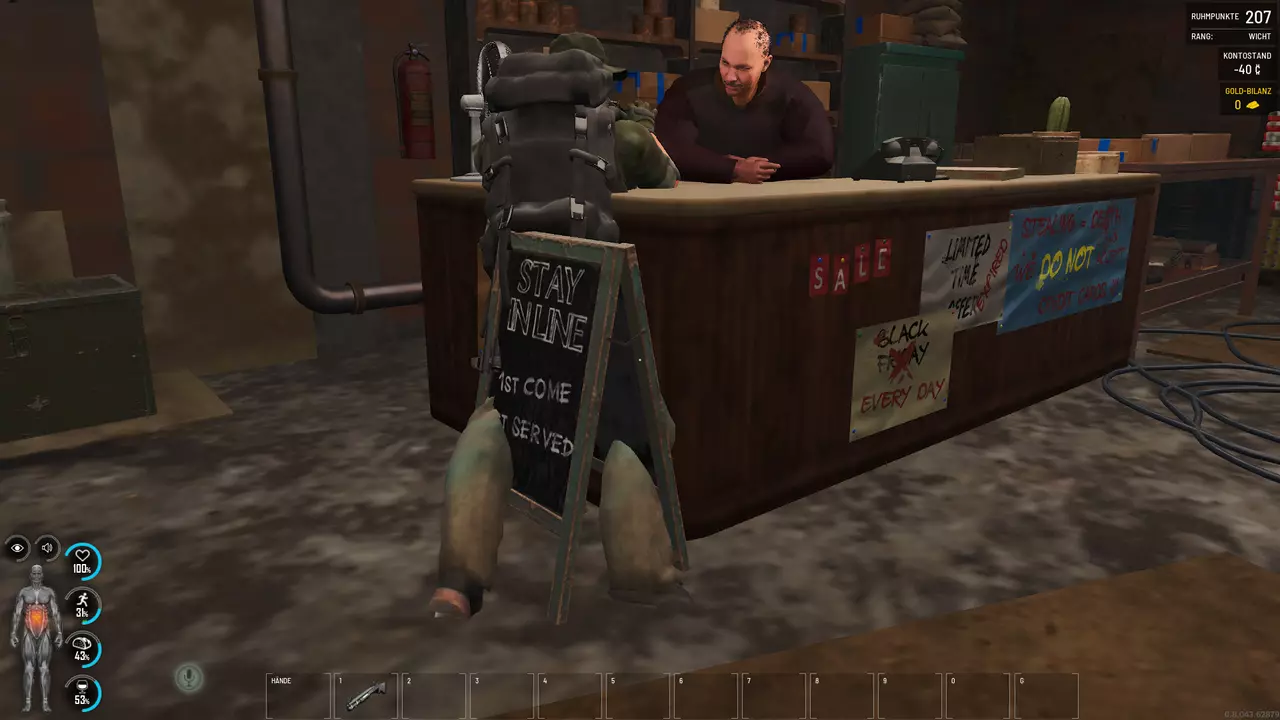 Feststecken an der Theke des "All Goods" Ladens bei Z3