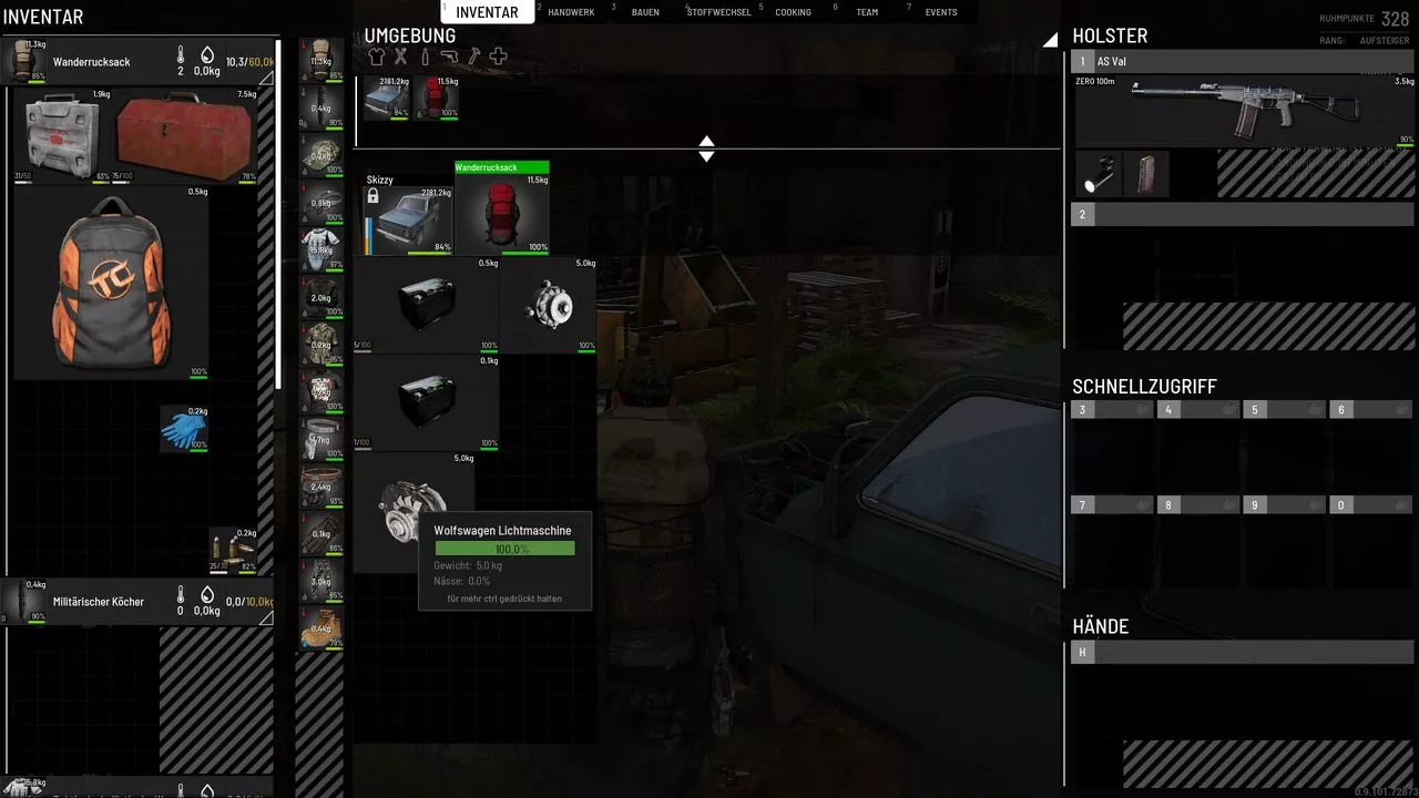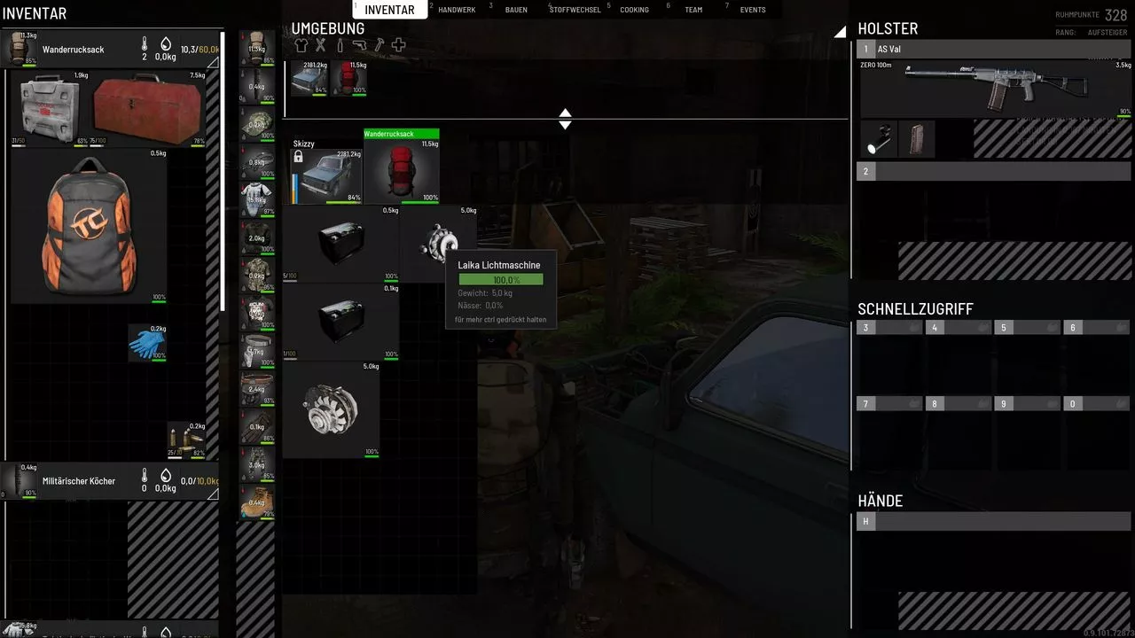 • Vielleicht wisst ihr es ja schon aber bei uns können die Items nicht bzw selten im Rucksack oder Fahrzeug gedreht werden, des weiteren ist das Item: Laika Lichtmaschine kleiner als die des WW. Bilder füg ich zu