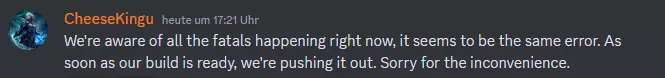 Hallo zusammen, ich hoffe es geht euch allen gut! Lasst uns die Mitte der Woche mit einem kleinen Hotfix unterbrechen. Schaut es euch an!