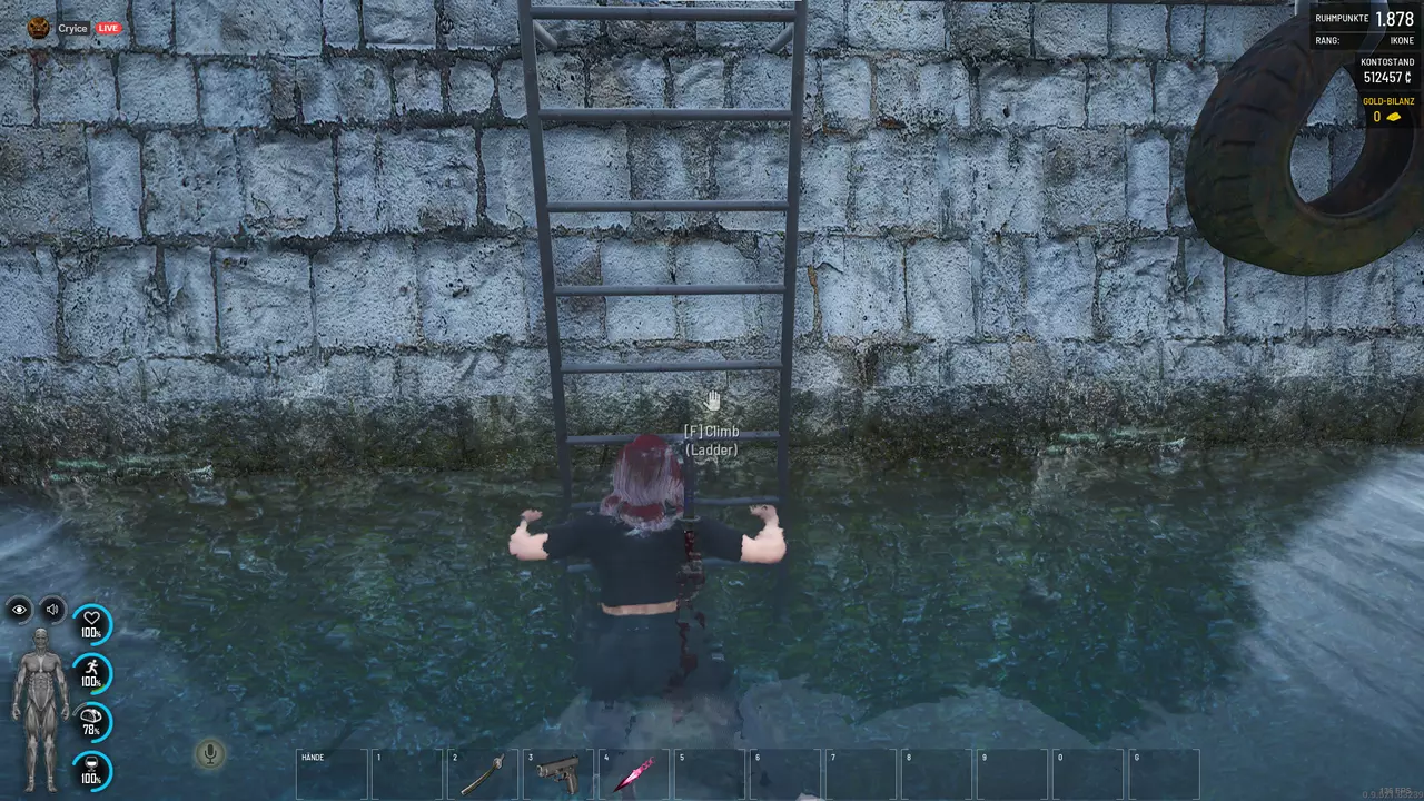 Als ich sagte, an der Leiter f drücken sagte er mache ich.