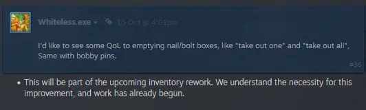 Zusammengefasst denke ich, dass diese beiden Funktionen – Drag & Drop für markierte Items und die automatische Sortierfunktion – das Inventarsystem benutzerfreundlicher und das Spielerlebnis insgesamt angenehmer gestalten könnten. Ich freue mich auf eure Meinung dazu und hoffe, dass das Entwicklerteam diese Ideen vielleicht aufgreifen kann!