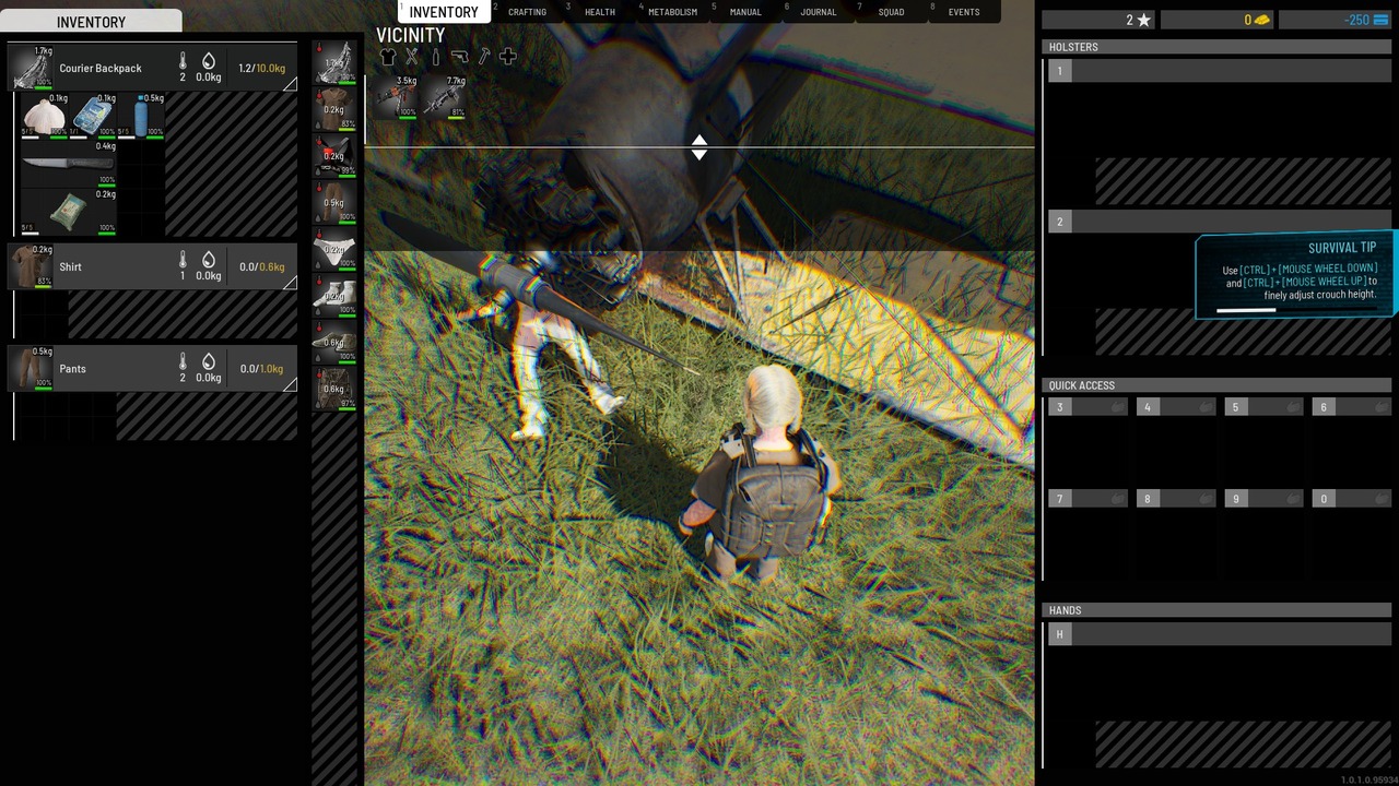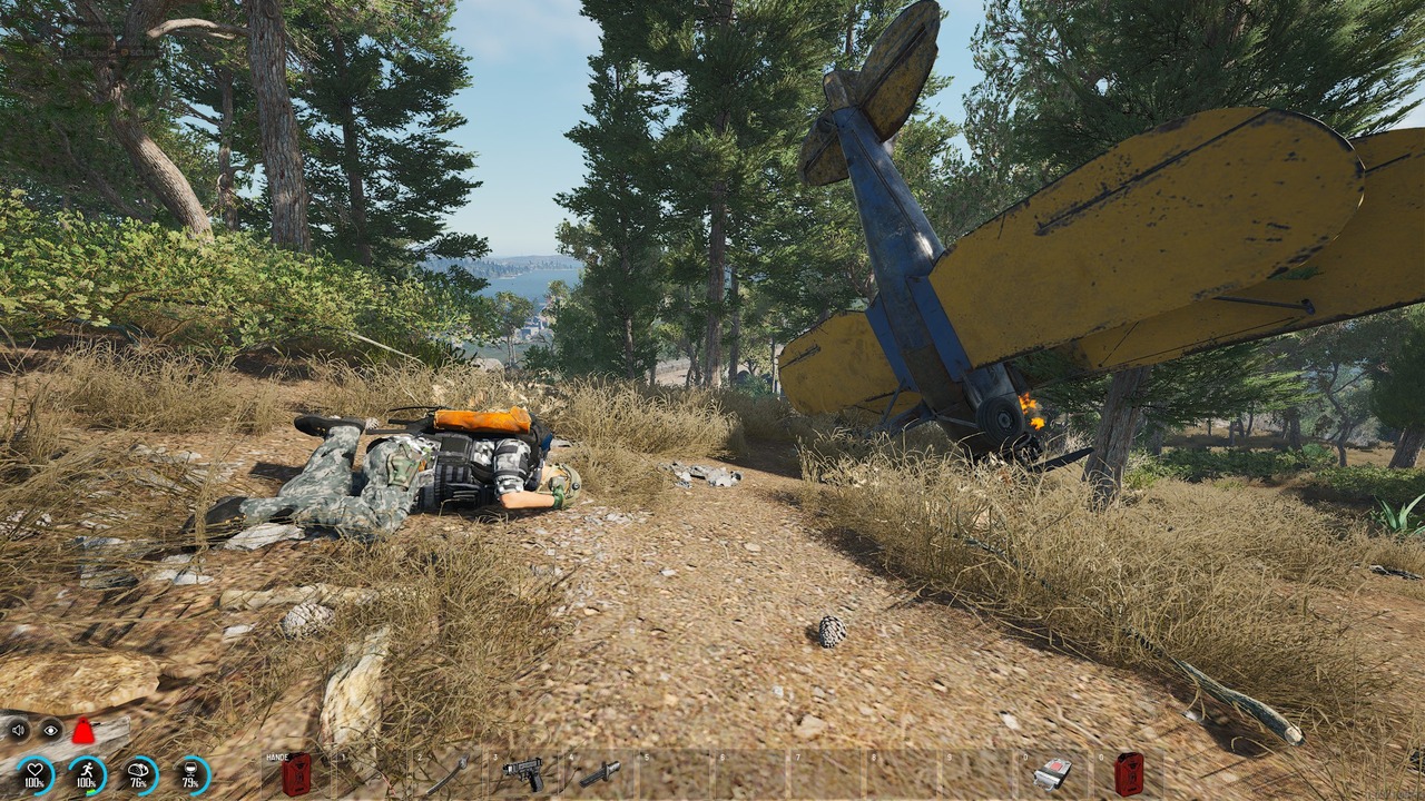 Nach dem Absturz und zurück an der Leiche haben wir festgestellt, dass die Waffen von den Rückenslots nicht auffindbar waren.