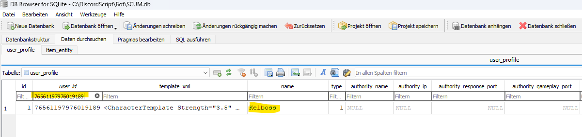 Ich bin nicht verantwortlich wenn eure SCUM.db crasht! Des weiteren geht es nur um das Lesen nicht das Schreiben! Lasst das am besten!
