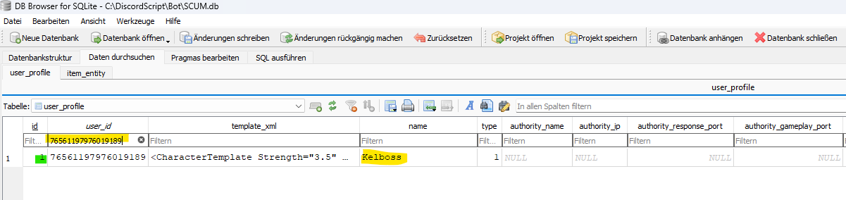 Ich bin nicht verantwortlich wenn eure SCUM.db crasht! Des weiteren geht es nur um das Lesen nicht das Schreiben! Lasst das am besten!