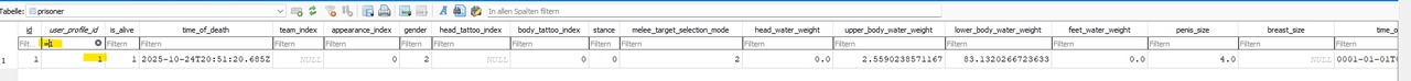 Dann öffnen wir die Tabelle prisoner und suchen nach der notierten id in user_profile_id(bei 1 kommt auch 11, 21,31,111 usw. deshalb am besten =1 oder was auch immer eure Ziffer ist):