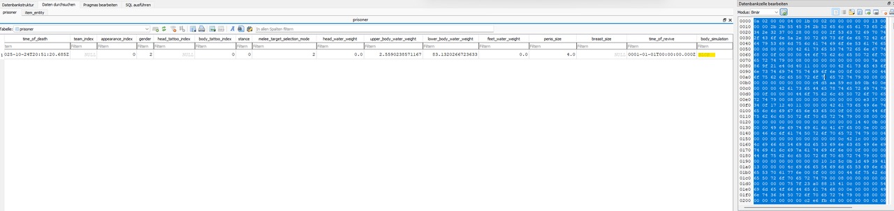 Dann gehen wir zur body_simulation spalte. Diese hat ALLE eure Attribute (Stärke, INT, DEX etc) und auch die subattribute (Schiessen, Fahren...)