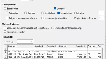 Hier darauf achten, dass die Koordinaten in den Spalten M,N und O sind. Da das LOG-File nur Leerzeichen als Trenner hat.