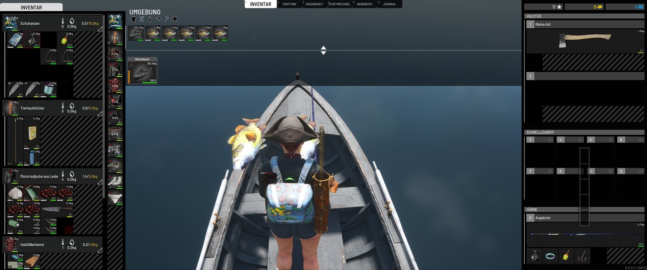 Von ca 8 Versuchen sind 5 Fische im Boot geblieben, teilweise hängend in der Luft. Hab jetzt nur Barsche rausgezogen und zwei ganz kleine, die kleinen hat der Char ins Wasser geworfen. Der Fisch wurde auch ins Wasser geworfen wenn der Char nicht in der Mitte des Boots gestanden hat.