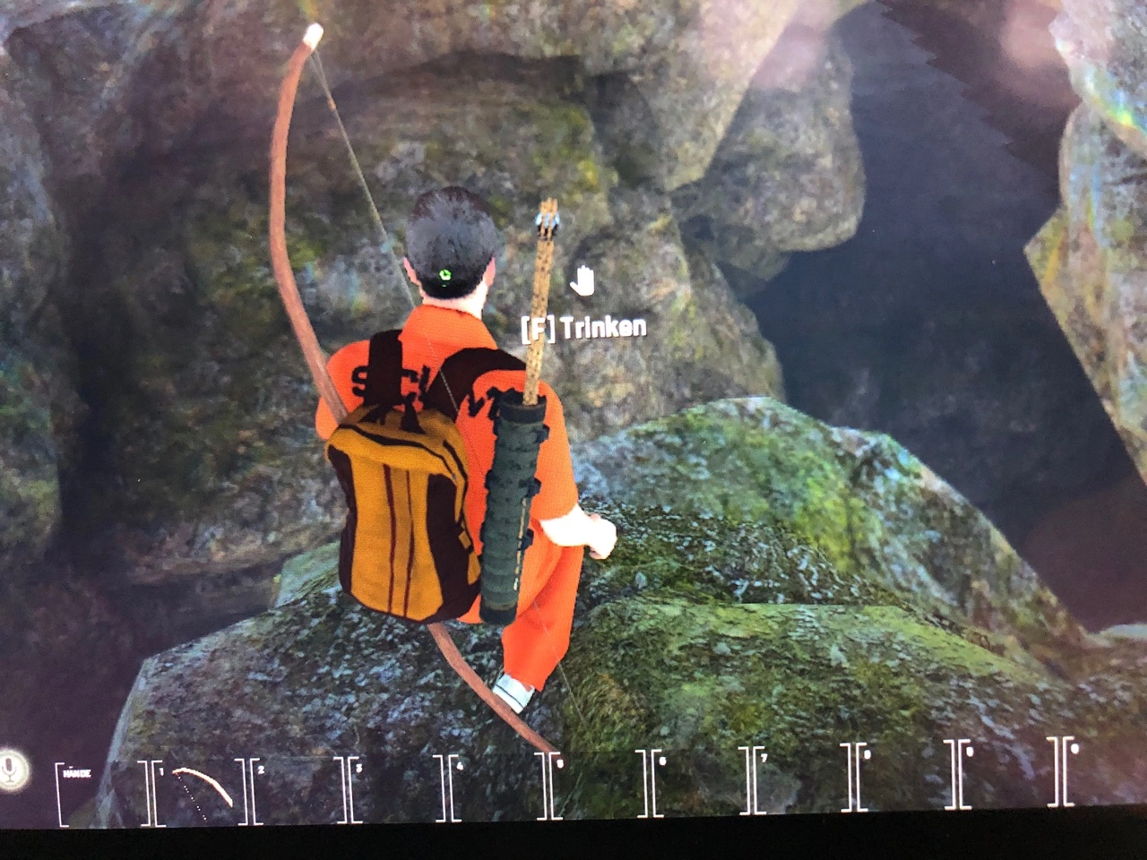 Bild 1: von oben sieht es aus, als wäre Wasser drin, man kann es auch auch als (Meer-)Wasser nutzen, zB Trinken 🤮, sobald man aber ins „Wasser“ springt, ist da quasi kein Wasser, man landet auf dem Trockenen und kann sich verletzen. Ein Mal drin, kommt man auch nicht wieder auf normalem Wege raus (nur mit Teleport).