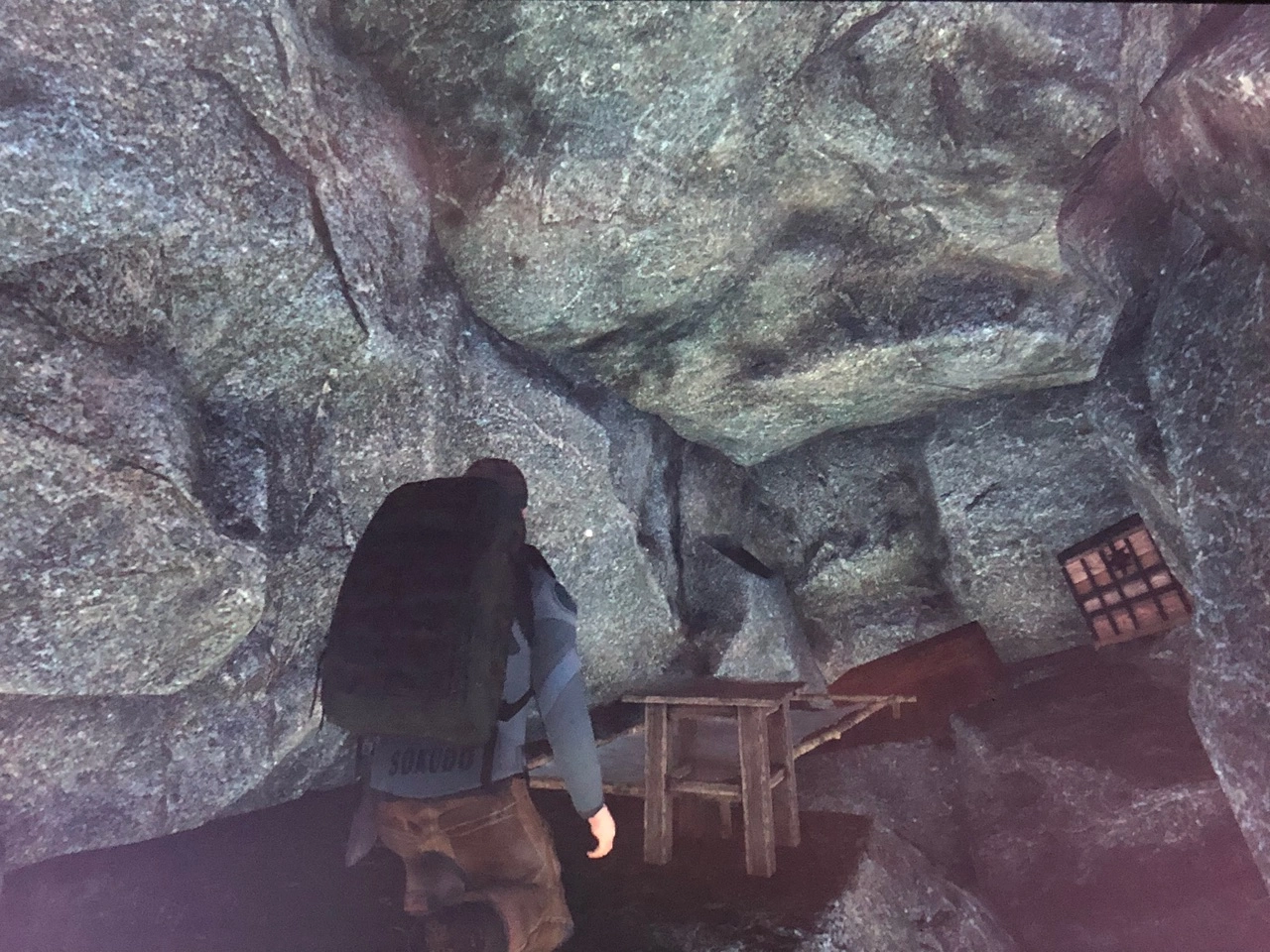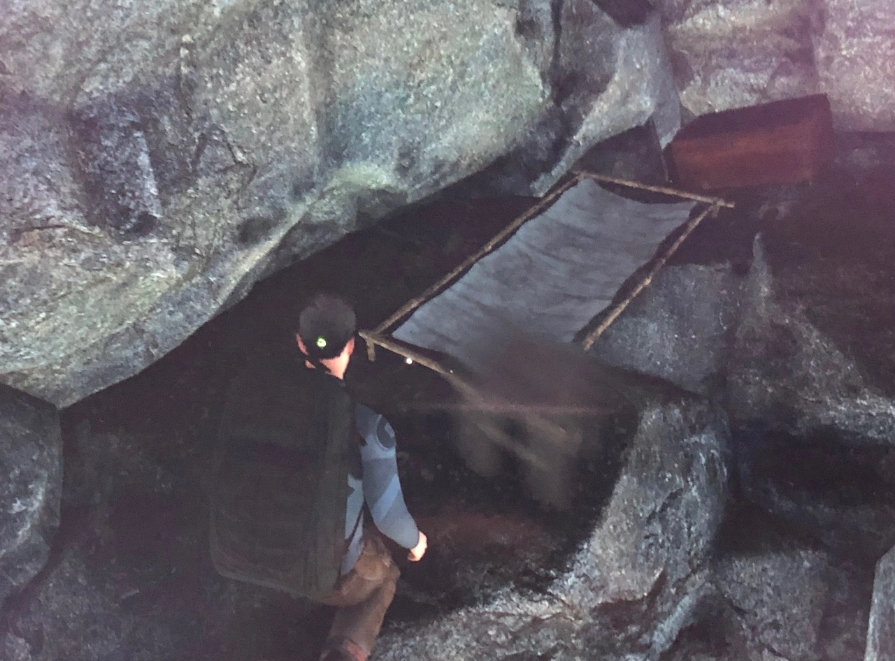 - bei dem provisorischen Bett, kleiner Feuerstelle,