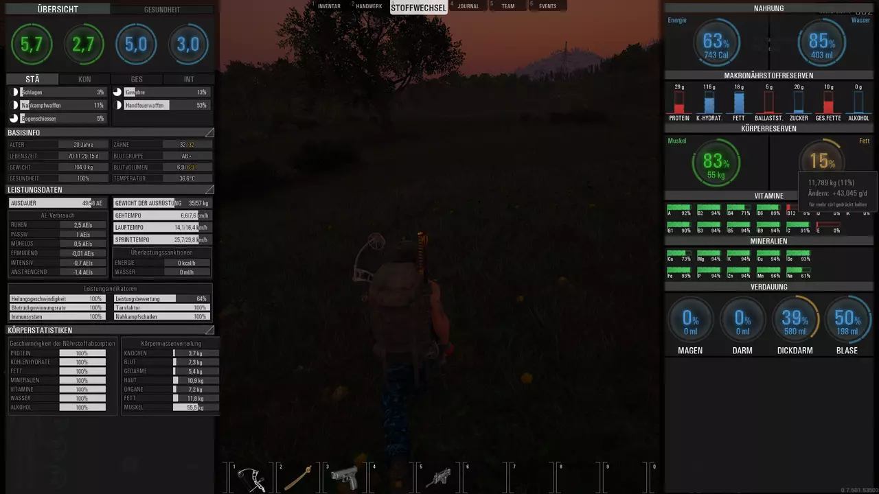 Der Stoffwechsel ist auf 5,0 gestellt...