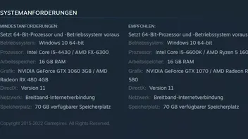 Auch die Mindestanforderung an Hardware wurde ja von 960 mit 2 GB auf 1060 mit 3 GB angehoben.
