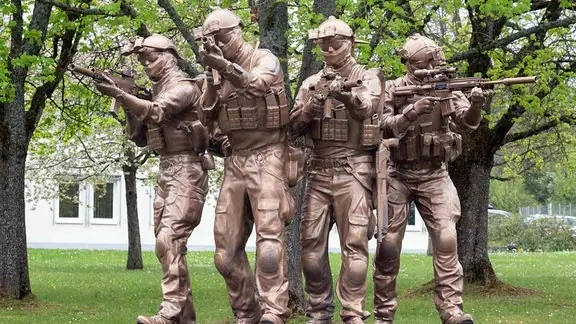 How Hard is SPECIAL FORCES Training? - The SF Qualification or "Q" CourseThe US Army Special Forces Qualification Course, the “Q Course” for short, is the training program or training pipeline that all candidates must endure to be...www.youtube.comSogar auf einem Monument des KSK haben die Knieschoner.