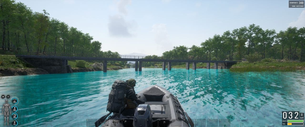 In der Bucht östlich der Torpedofabrik haben wir am Strand 47 Puppets gesehen und von Floß aus ins Wasser gelockt. Denen geht jetzt, wie dem Spieler nach kurzer Zeit, die Luft aus und sie fallen tot um. Wenn ein Sprenger unterm Boot unter Wasser im Hafenbeckentiefe explodiert, nimmt man reichlich Schaden, stirbt aber nicht.