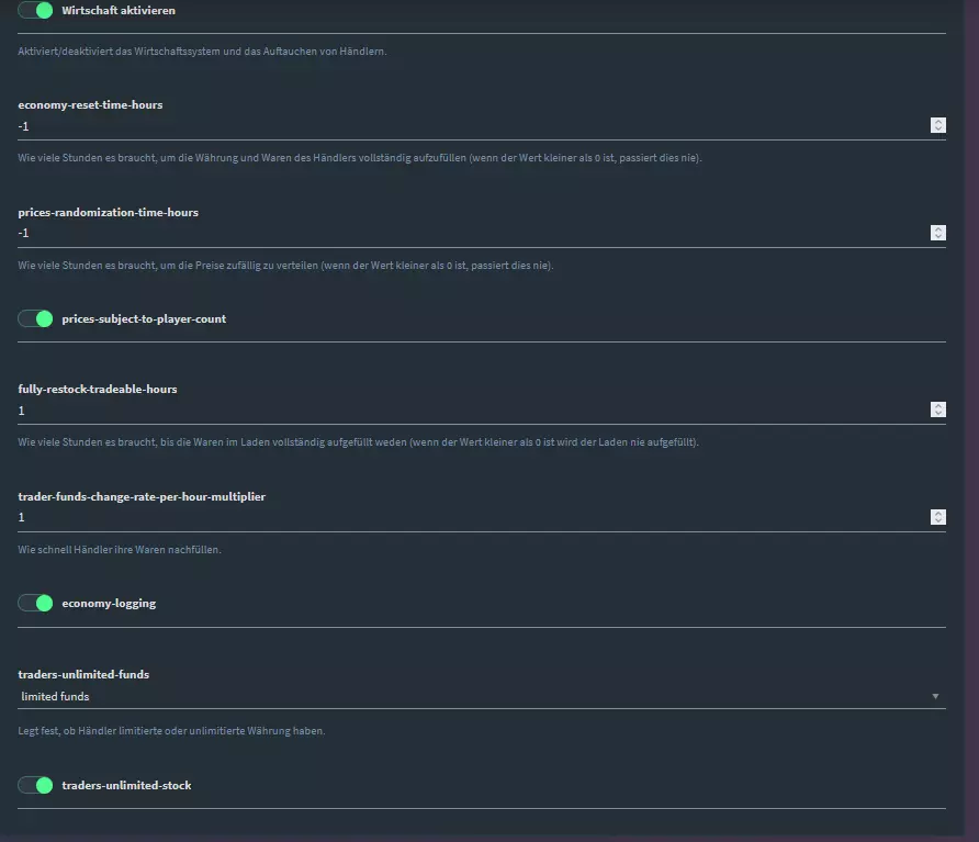economy-reset-time-hours -> von -1 mal hoch auf 2 (aber ohne merkliche Änderung)