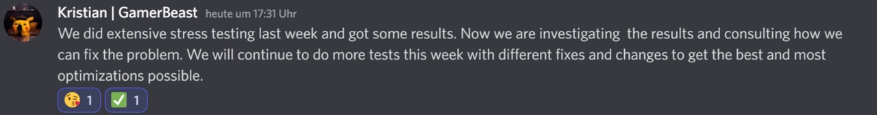 Ein befreundeter Spieler hat Kristian aka GamerBeast heute befragt, ob sie sich der Lag-Probleme überhaupt bewusst sind und folgende Auskunft erhalten: