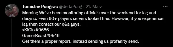 ich finde ich ehrlich gesagt nicht gut, dass man das allgemein bekannte Problem des desyncs den "Schlechten PCs" in die Schuhe schiebt und dabei noch so sarkastisch rüber kommt. Gleichzeitig stellen sich am Server nämlich noch andere Probleme ein. Zombie-Moonwalks, Loots gehen nicht auf, Animationen failen, zb Auto-Einstieg, unter die Map fallen beim Aussteigen oder durchs Fenster springen, usw. diese ganzen Koordprobleme, wo der Server einfach nicht mehr genug TPS ausspuckt.