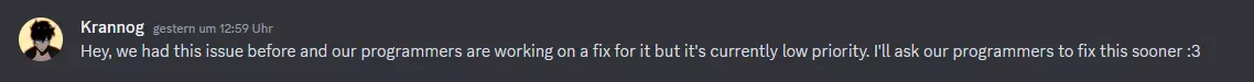 Laut seiner Aussage scheint es nur wenige Server zu geben die das haben - es könnte also helfen einen Fix zu bekommen.