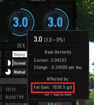 Desto Höher dein "Fat Gain" ist, desto schneller geht dein DEX nach unten.
