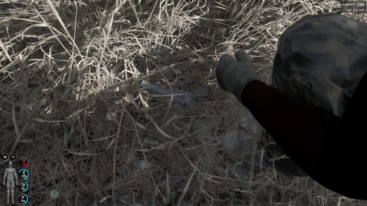 So bei 700 stunden in scum ist mir ein fehler aufgefallen der immer wieder da ist und zwar folgendes es gibt gewisse Items die wenn die aus deiner hand fallen wenn du voll bist wie letztens meine pistole lag noch am boden wird aber nicht mehr angezeigt und wenn mann im hohen grass ist ist dies total nerfig diese items wieder zu suchen die mann dann auch nur mit f wieder aufheben kann mann sieht das besagte item am boden aber in der leiste wird nix angezeigt wie gesagt ist der fehler sehr selten tritt aber auf häufig bei alten items in ww2 bunkern auf