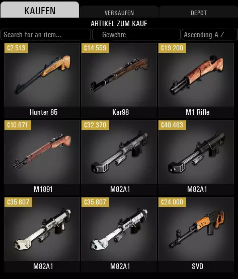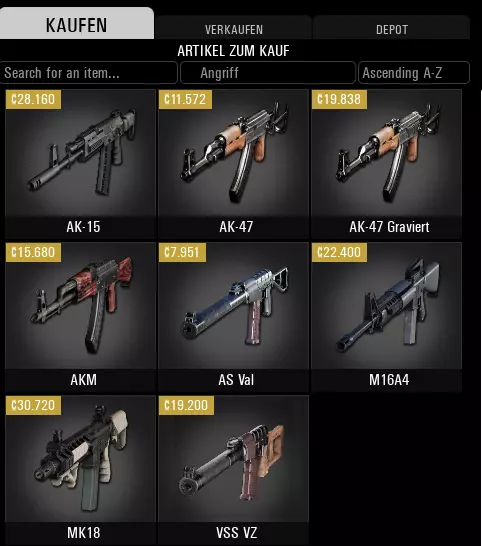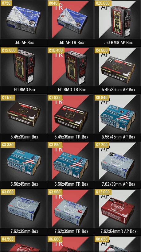 Die An- und Verkaufspreise von seltenen Gegenständen und besonders AP Munition