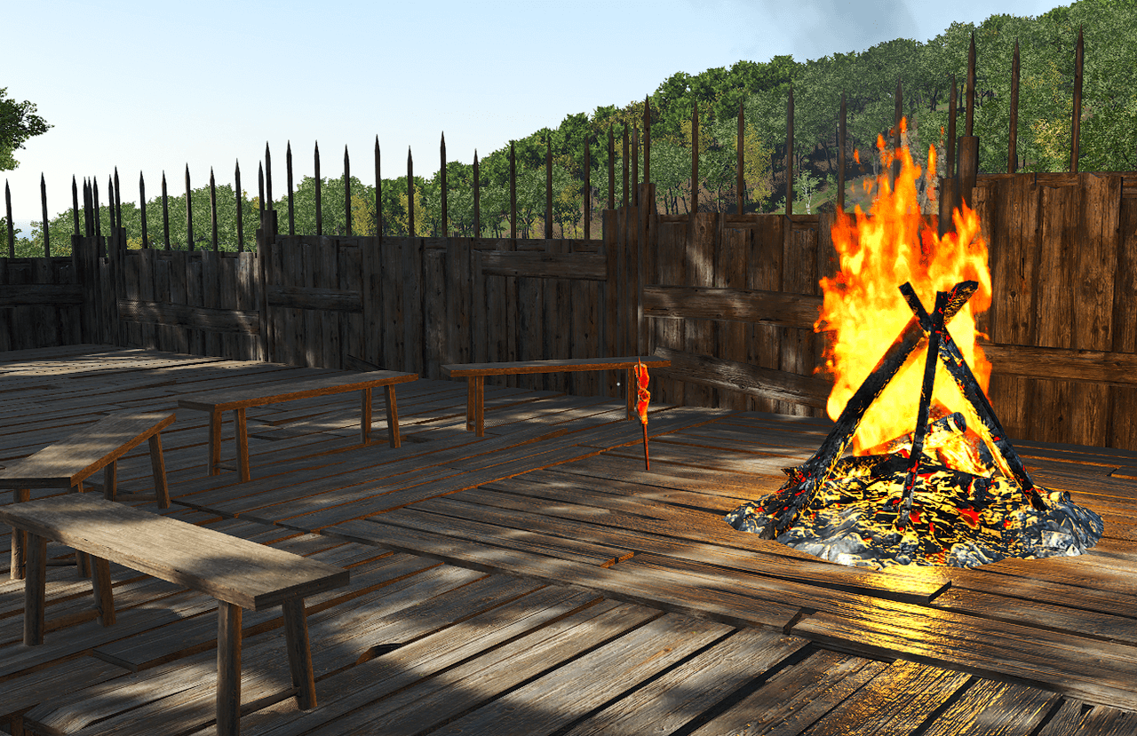 Als die Hütte entfernt war, habe ich gesehen, dass auch die anderen Hütten mit zerstört wurden, weiters ein kleiner Teil der Außenwand (Pallisade).