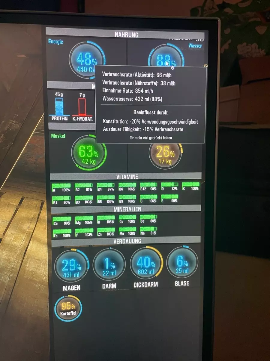 Mir ist aufgefallen das man die Konstitution sehr schwer erhöhen kann im Gegensatz zur Stärke. Er zählt den Wert für die Konstitution viel zu langsam hoch.