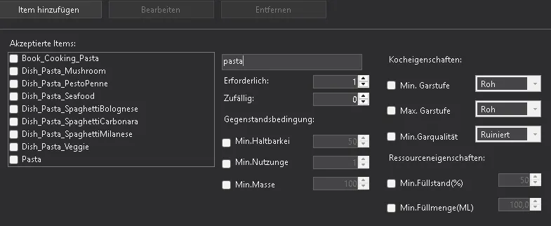 Stimme ich Dir zu! Denn wenn gekochtes Essen einen Spawncode hätte, könnte man es auch in selbst erstelle Quests einbauen.