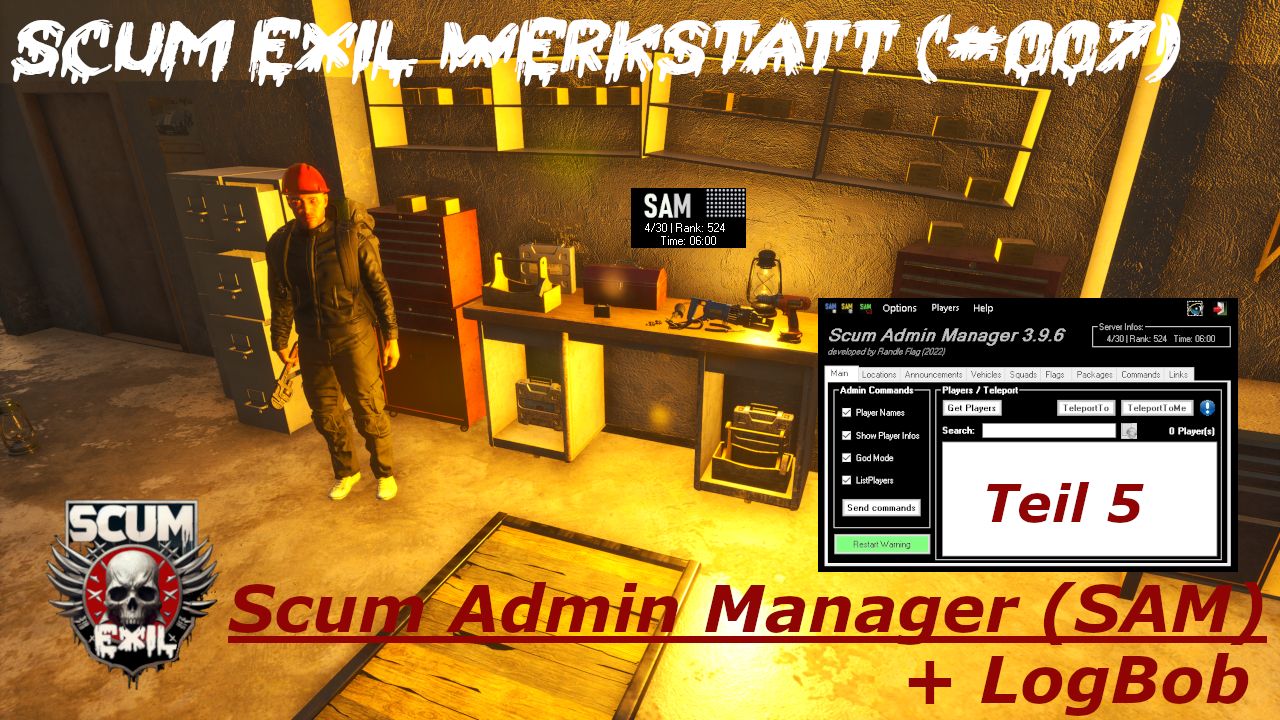 hier ist nun (endlich) der letzte Teil des Scum Admin Manager (SAM) Tutorials). Außerdem gehe ich hier auch kurz auf den LogBob von scumsaecke.de ein.