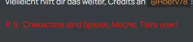 P. S.: Charactere sind Spieler, Mechs, Tiere usw!