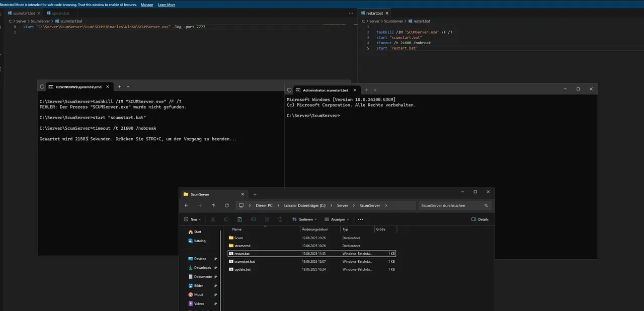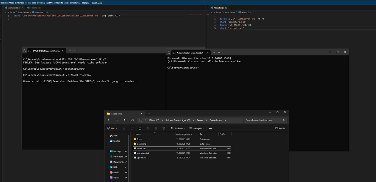 Ich würde gerne mehr über den restart script wissen und gibt es vlt eine möglichkeit wenn man den befehl #RestartServer ausführt das der server denn auch neu startet und nicht nur die .bat schließt