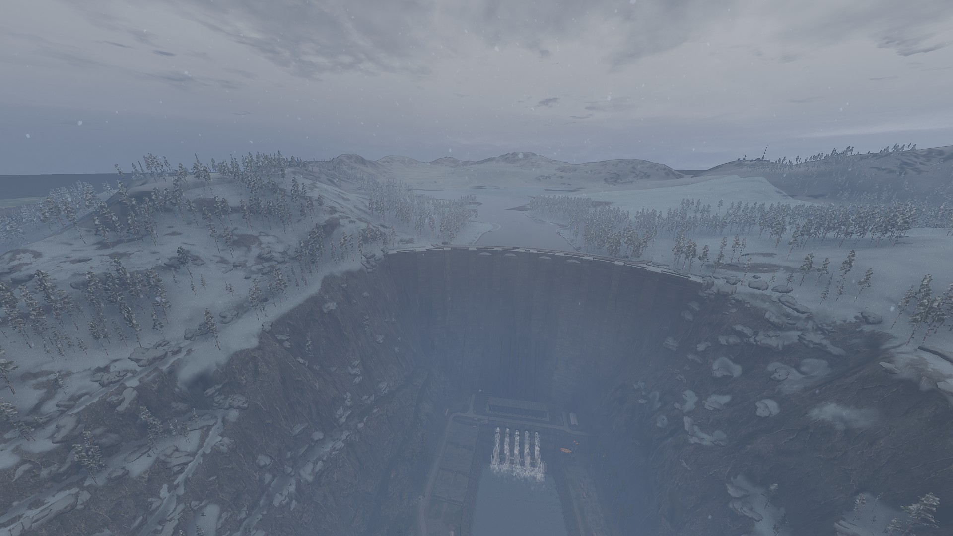 Die überarbeitete Schneelandschaft mit dem Damm im Hintergrund. :love: