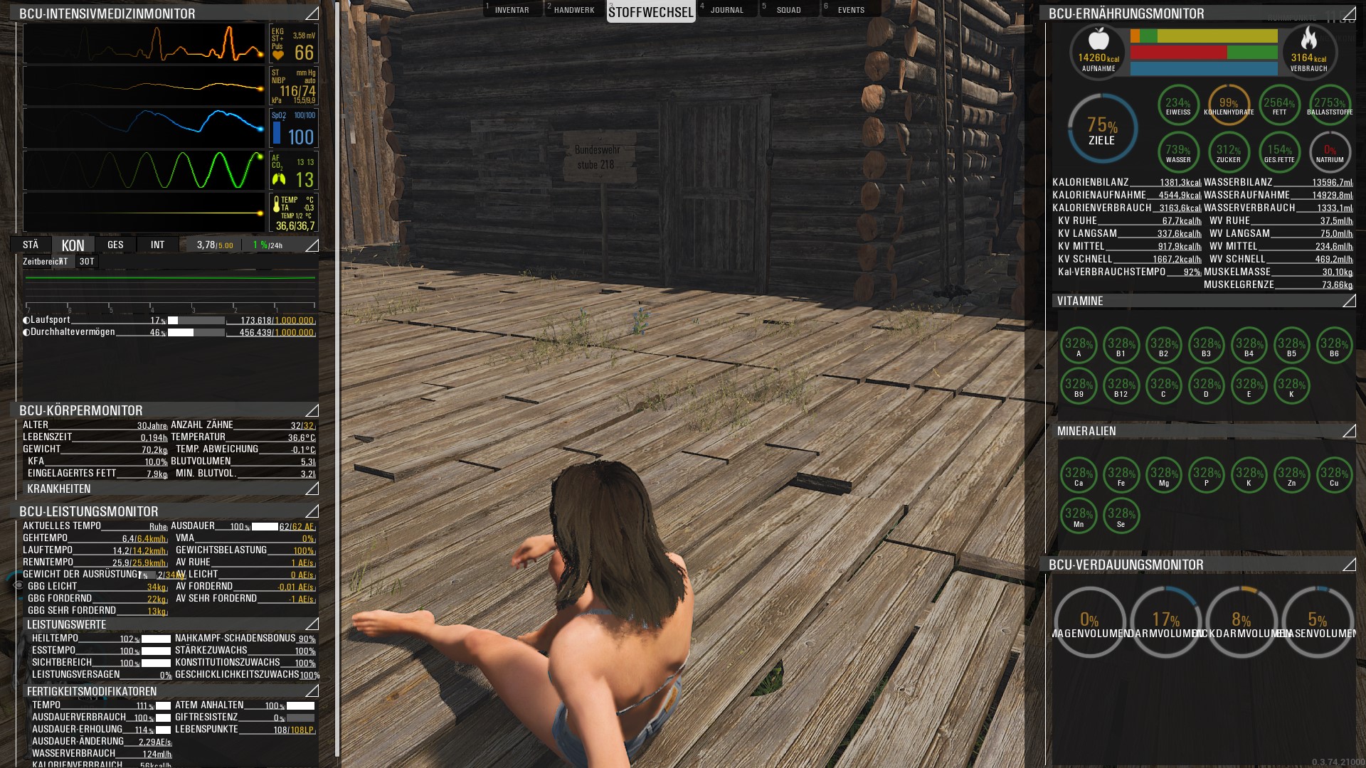 Einfach mit STRG die werte der nahrung checken und dann diszipliniert prozente pushen und wasser. Dauert bei neuem Char auch 1-2 Wochen Stoffwechsel zu pushen.